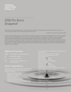 In 2020, our attorneys helped to ensure equal access to justice for pro bono clients ranging from the ACLU to victims of discrimination to DACA recipients, and more. We’re proud to share this snapshot of the work we’ve done in the community in the last year. We consider the work to balance the scales of justice our duty, but more importantly, at Coblentz, it is our privilege.